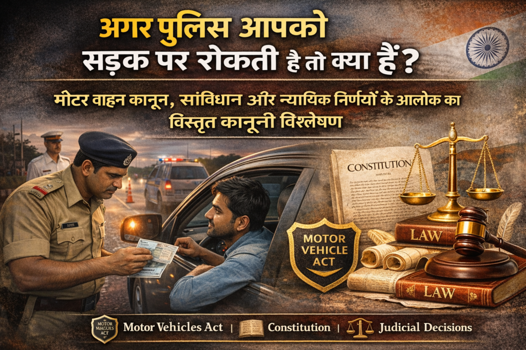 अगर पुलिस आपको सड़क पर रोकती है तो आपके कानूनी अधिकार क्या हैं? मोटर वाहन कानून, संविधान और न्यायिक निर्णयों के आलोक का विस्तृत कानूनी विश्लेषण