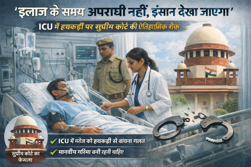 “इलाज के समय अपराध नहीं, इंसान देखा जाएगा” — ICU में हथकड़ी पर सुप्रीम कोर्ट की ऐतिहासिक रोक और मानवीय गरिमा का संवैधानिक विस्तार