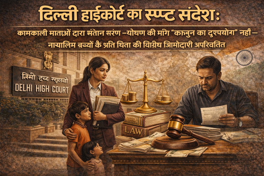 दिल्ली हाईकोर्ट का स्पष्ट संदेश: कामकाजी माताओं द्वारा संतान भरण–पोषण की मांग ‘कानून का दुरुपयोग’ नहीं — नाबालिग बच्चों के प्रति पिता की वित्तीय जिम्मेदारी अपरिवर्तित