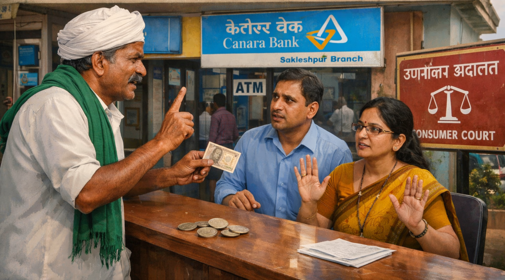 “9.34 रुपये का बकाया और 66 पैसे की वापसी”: सकलेशपुर में केनरा बैंक–किसान विवाद का कानूनी विश्लेषण